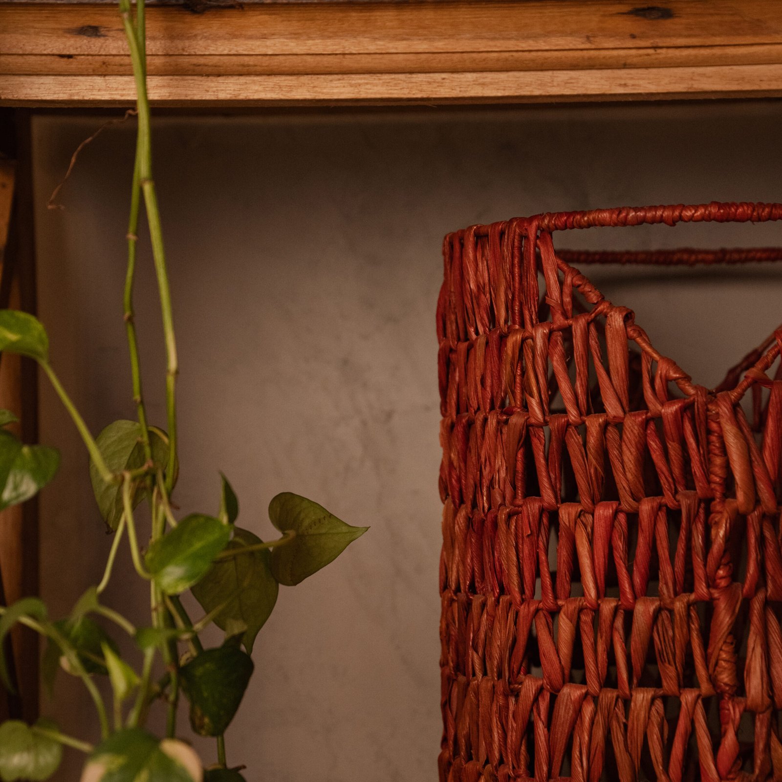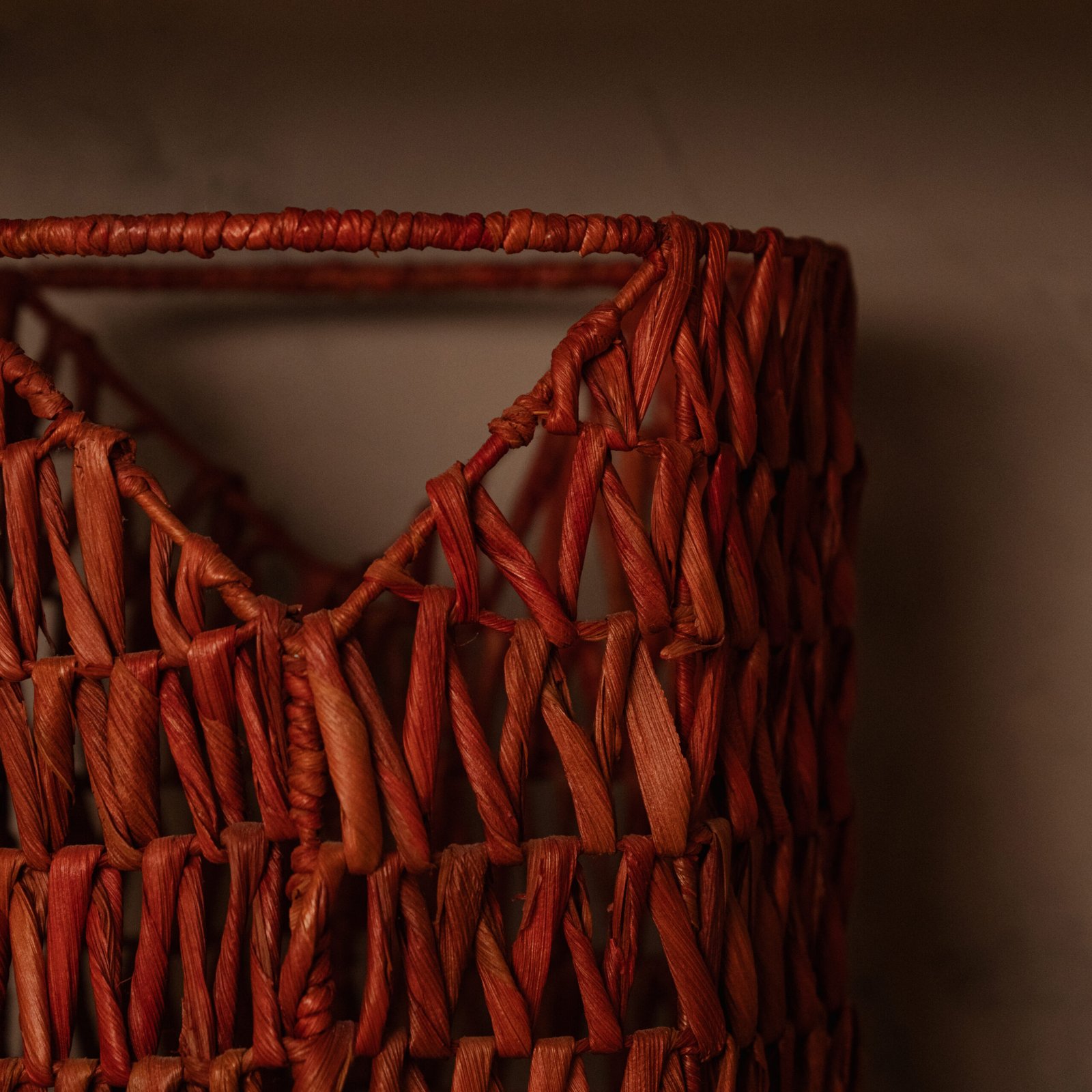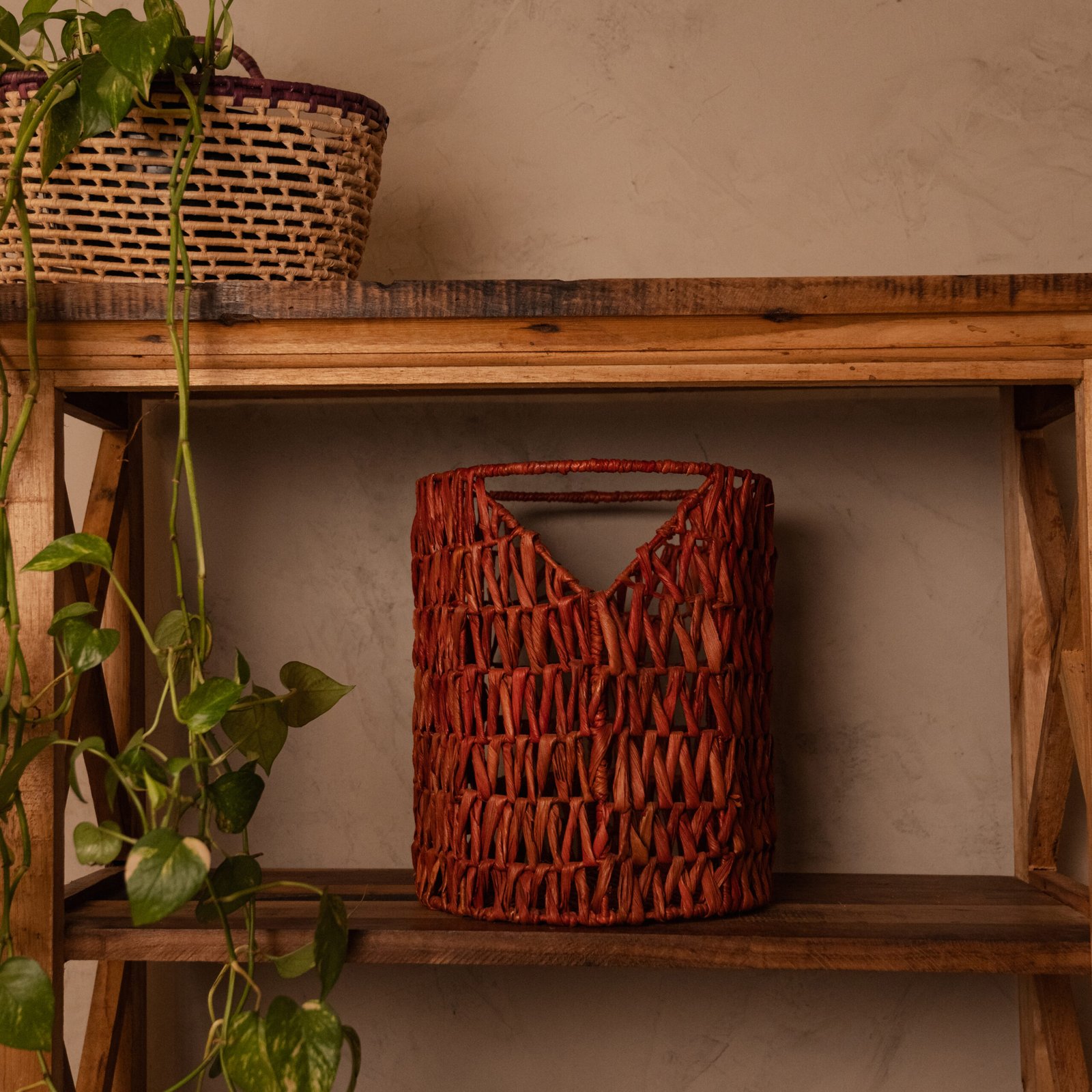 Feito à mão com palha de milho, este cesto versátil é perfeito para diversos ambientes.