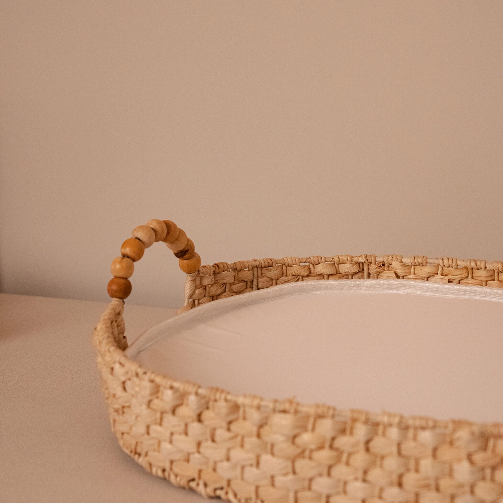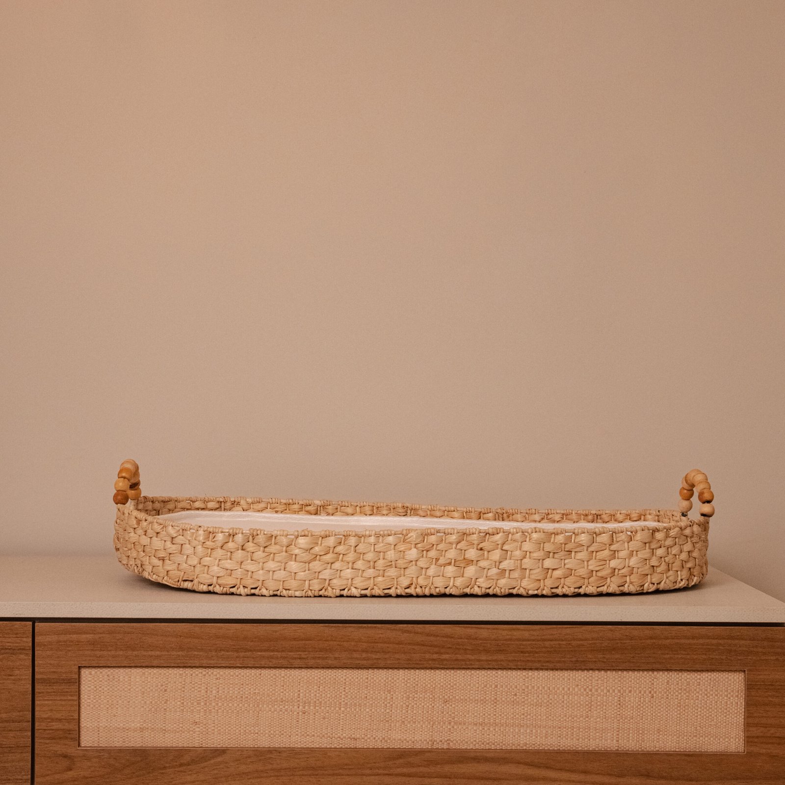 Proporcione ao seu bebê momentos de troca de fraldas mais confortáveis e seguros com nosso trocador em palha pérola. Feito à mão com palha de carnaúba, um material natural e respirável, ele garante um ambiente macio e acolhedor para o seu pequeno. Seu design simples e elegante se adapta a qualquer decoração, trazendo um toque de natureza para o quarto do bebê.