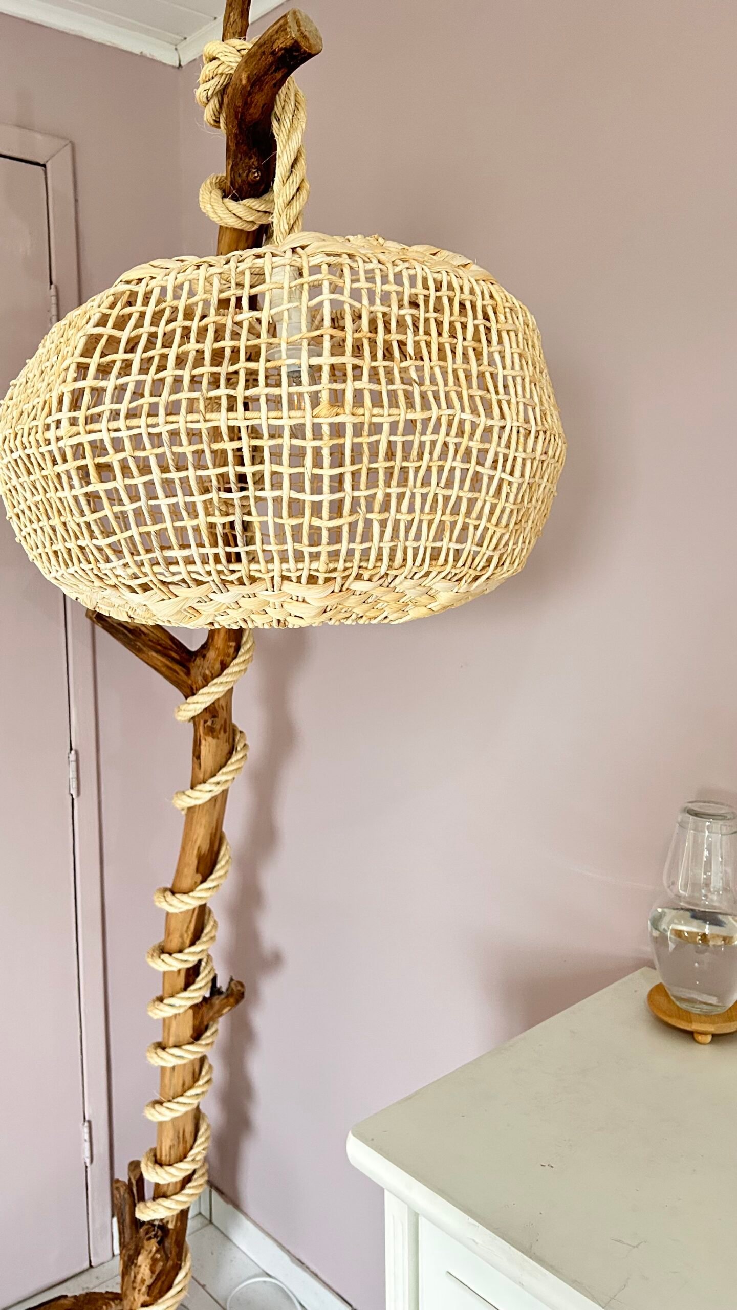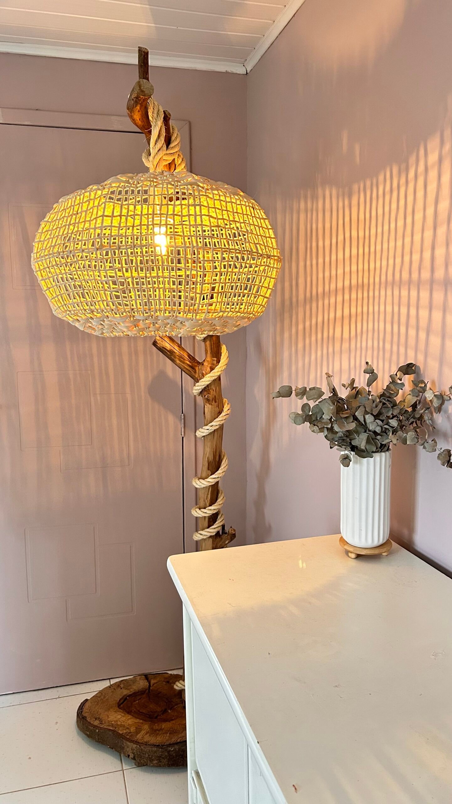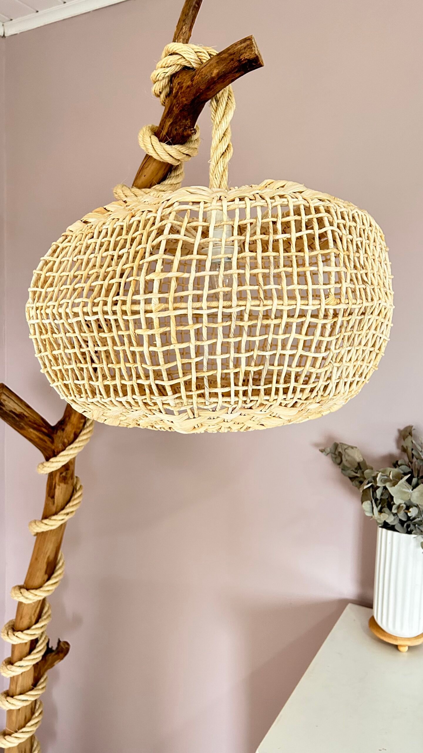 Adicione um toque de charme natural ao seu lar com a Luminária Aramada em Palha Natural!